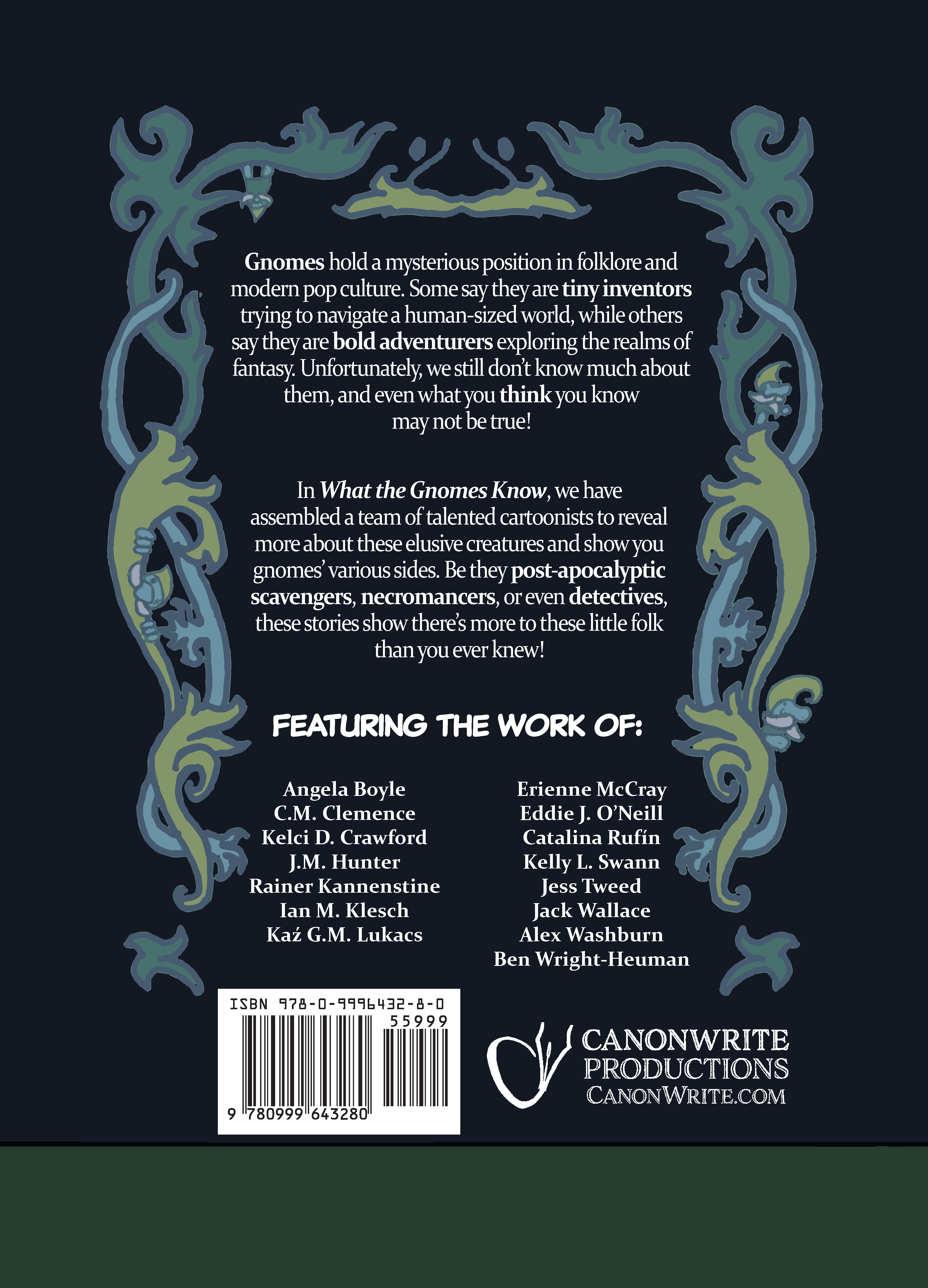 In WHAT THE GNOMES KNOW, we have assembled a team of talented cartoonists to reveal more about these elusive creatures and show you gnomes’ various sides. Be they post-apocalyptic scavengers, necromancers, or even detectives, these stories show there’s more to these little folk than you ever knew!